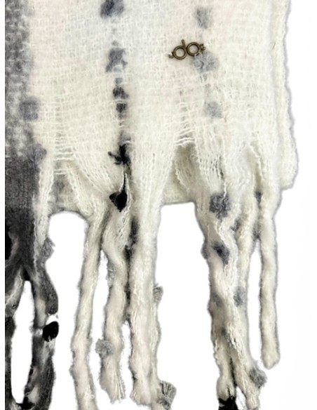 Bufanda tricolor con fleco. Tacto jugoso y suave, no pica!!! Medidas: 200cm de largo más el fleco y 50 cm de ancho. Composición 100% poliester.