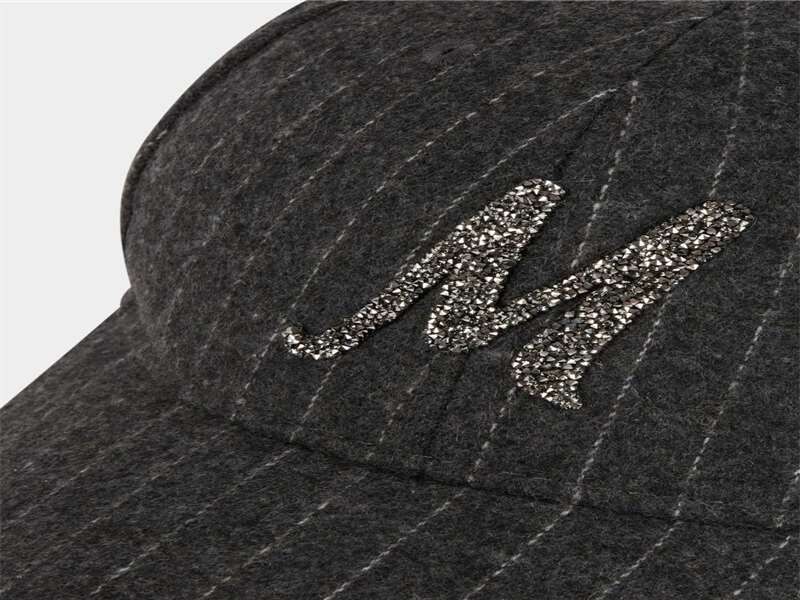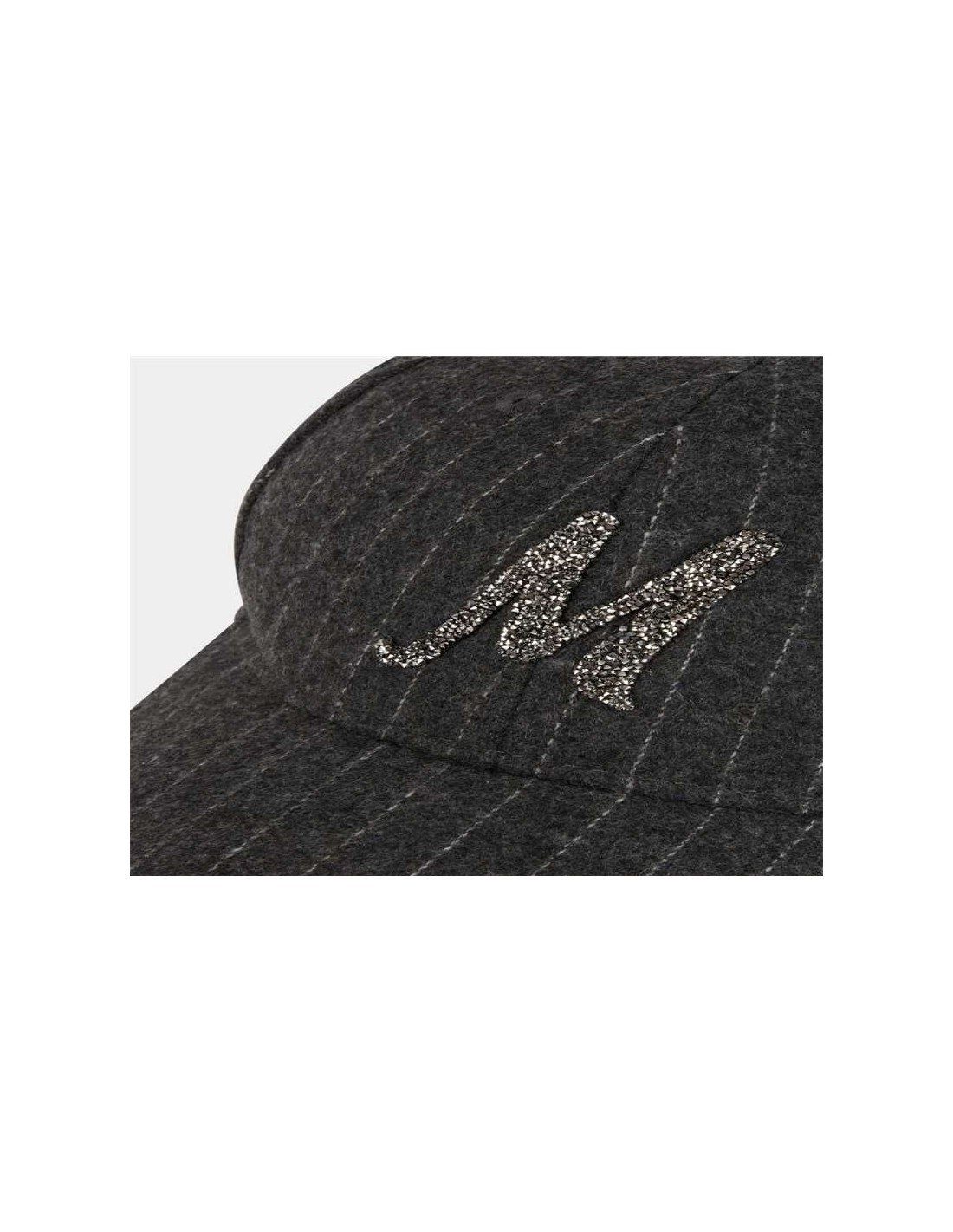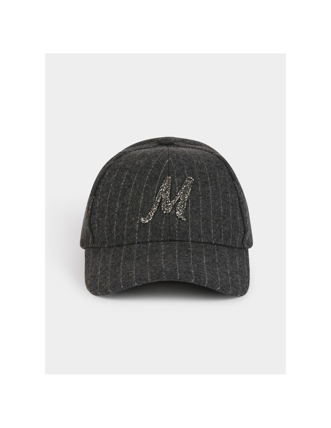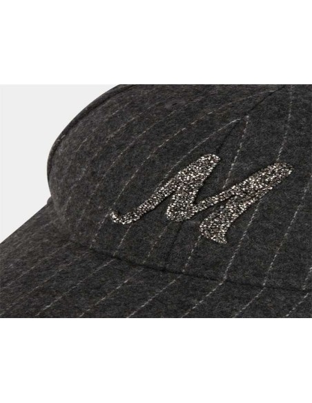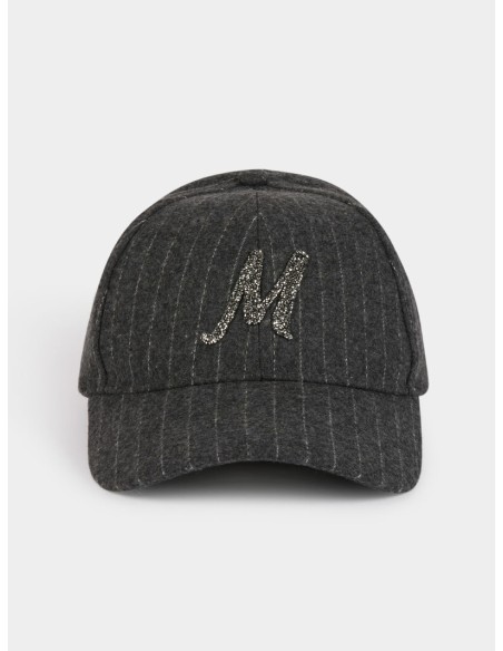 Gorra gris de raya diplomatica gris. Letra M en strass. Regulable en la parte trasera. Talla única.